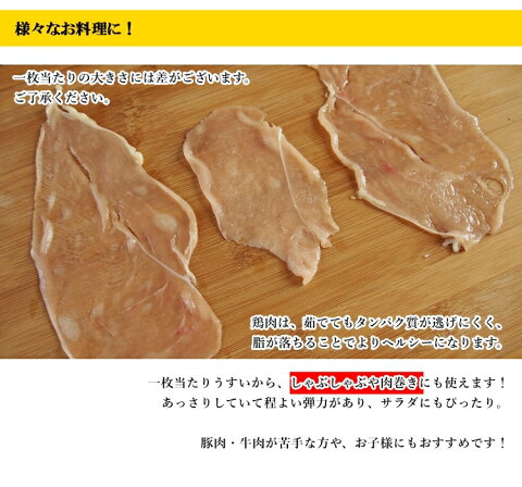 保存方法 冷凍庫で保存 原産地 国内産 商品説明 鶏のむね肉を、1.5〜2mmのごくごく薄い薄さにスライスしました。