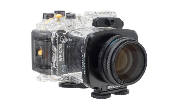 商品仕様 外径/全長: φ71.2mm/15.6mm 重量[陸上]: 20g 増設側マウント規格: イノン M67マウント 本体材質/表面処理: 耐蝕アルミ合金/硬質黒アルマイト ※右画像は増設例です。
