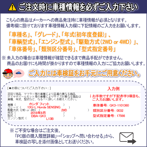 <車検について>製品のご使用はユーザー様の責任において道路運送法の保安基準の合致内容をご理解の上ご使用下さい。
