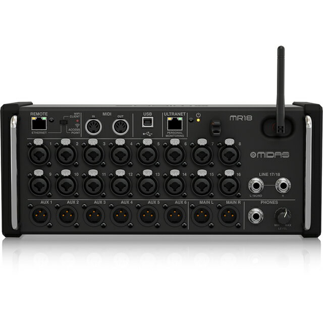 16のMidas プリアンプ、ワイヤレスコントロール用のWifiモジュール、MIDI I/O、マルチチャンネル双方向USBオーディオインターフェースを備えており、ライブとスタジオアプリケーションに理想的なツールです。