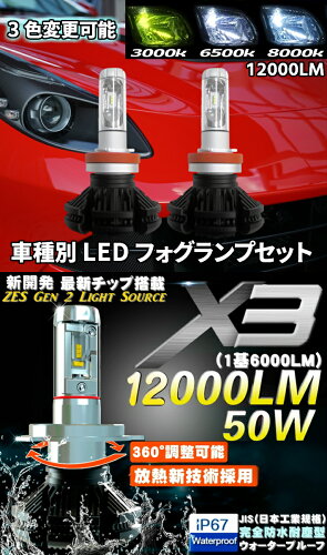 弊社大ヒット商品で楽天LEDランキングNO.1の高性能搭載8000LMフォグランプを超える12000LMモデル登場!! さらに3種類発光色着せ替え可能!!クラス最高峰12000LM達成!!(6000LMx2基) 弊社は高品質正規チップ搭載品を販売しておりますのでご安心ください。